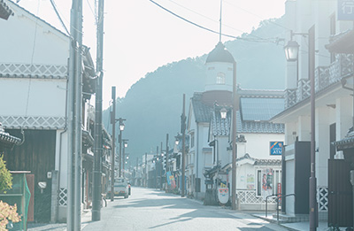 瀬戸内海に面した広島県の山間部にある、江戸時代から昭和にかけて栄えた宿場町。人とものが行き交い、古くからものづくりと書道が盛んなここ上下町で、1983年の創業以来、額ぶちをつくり続けてきました。山あいにある工場で、DENTOのフレームは今もつくられています。