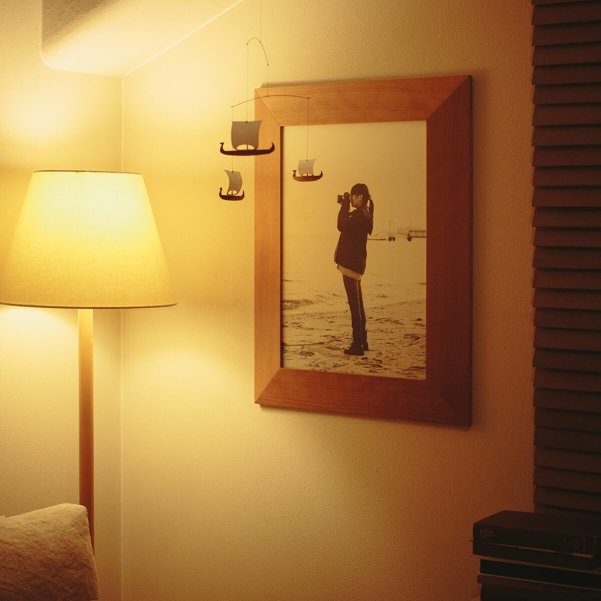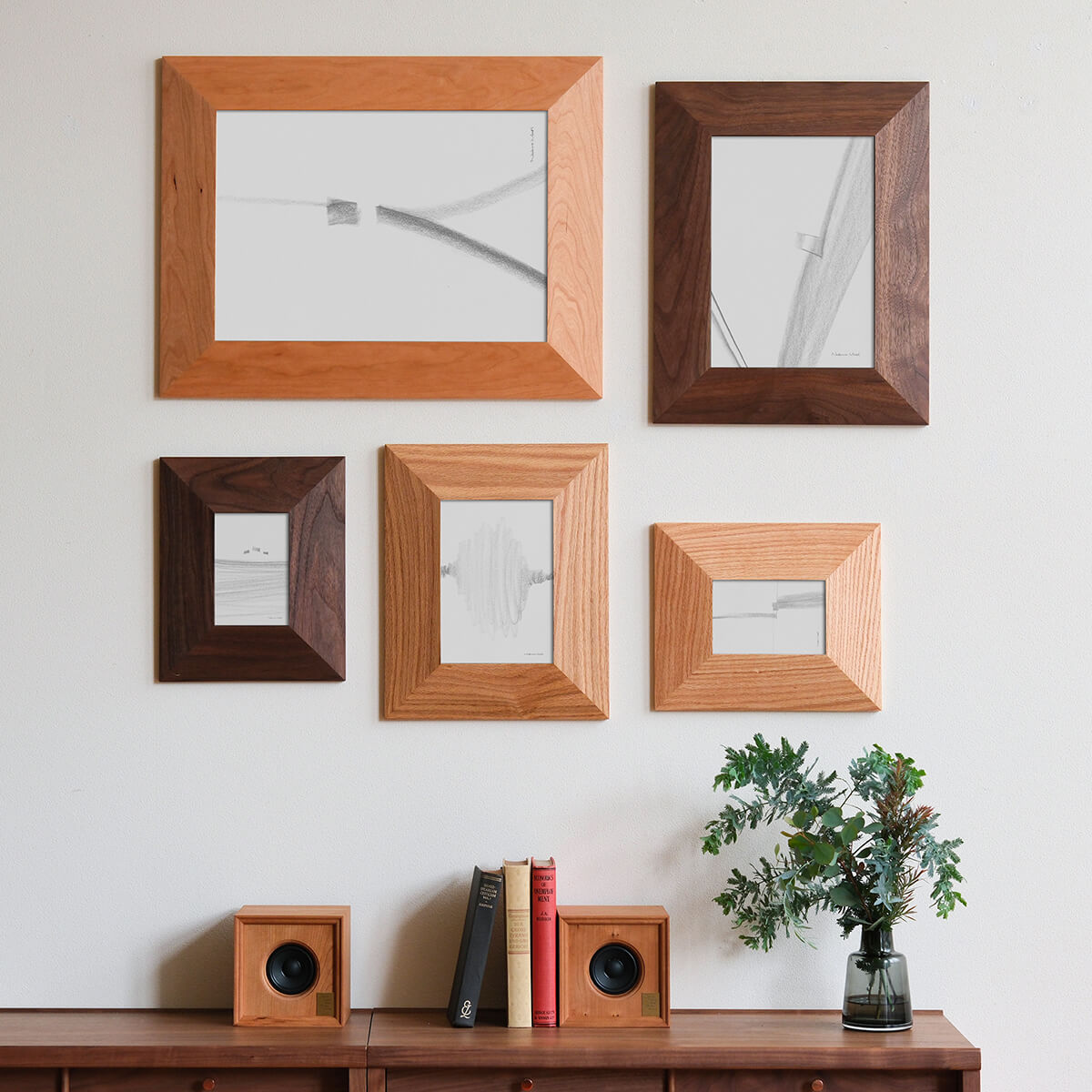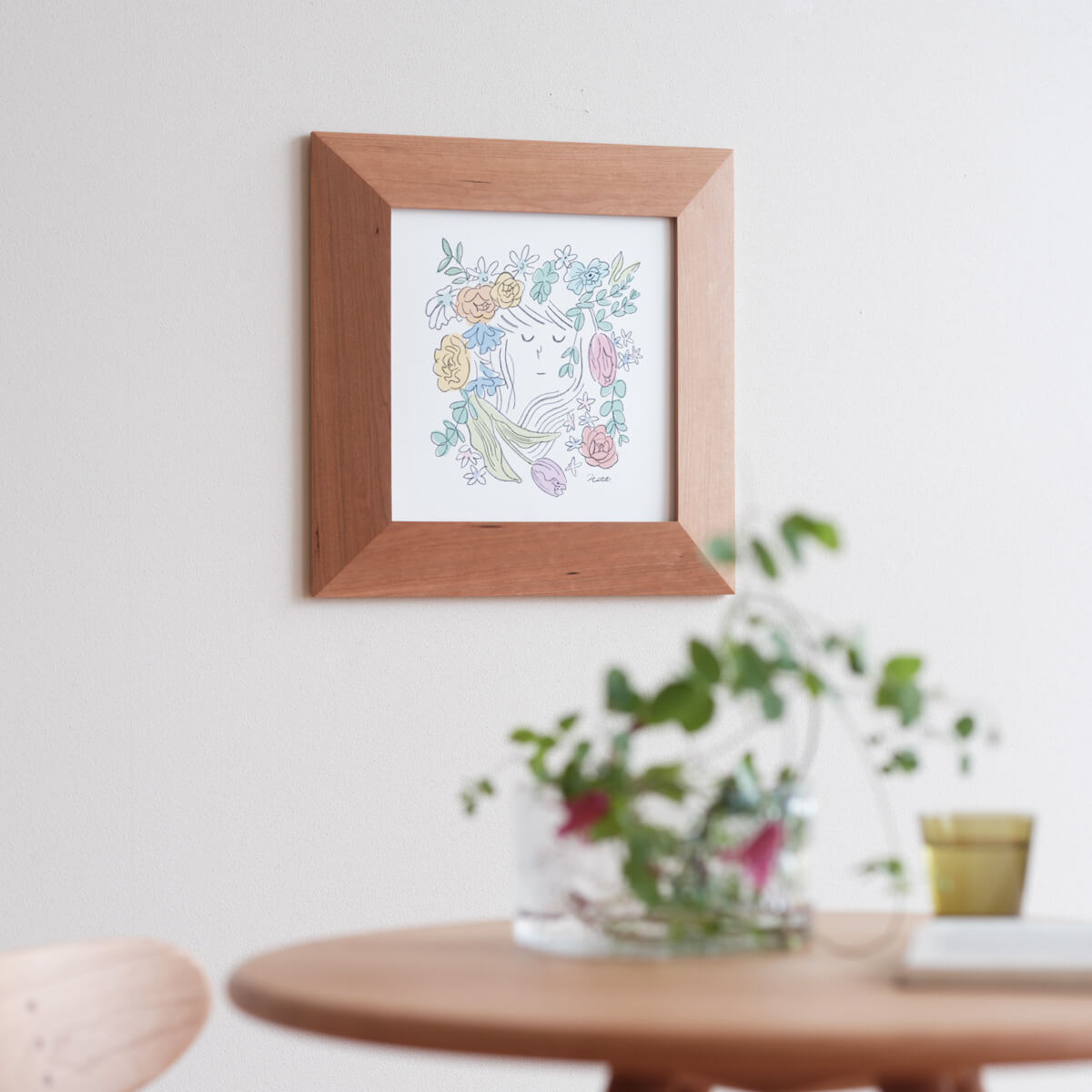 木目の面積が広いため、部屋に優しい表情を演出することができます。フレームだけでなく、ミラーフレームの相性もよいでしょう。