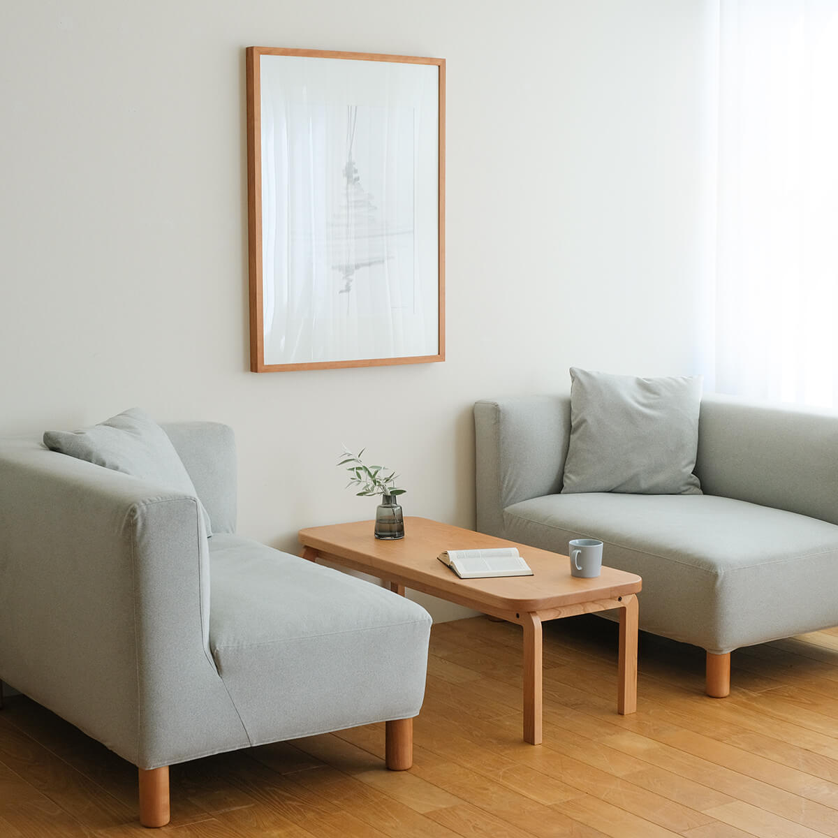 すっきりとした印象で作品により視線が向かう効果があり、ポスター、写真、子どもの作品などマルチに活躍します。シャープな仕上がりの家具との相性は抜群です。