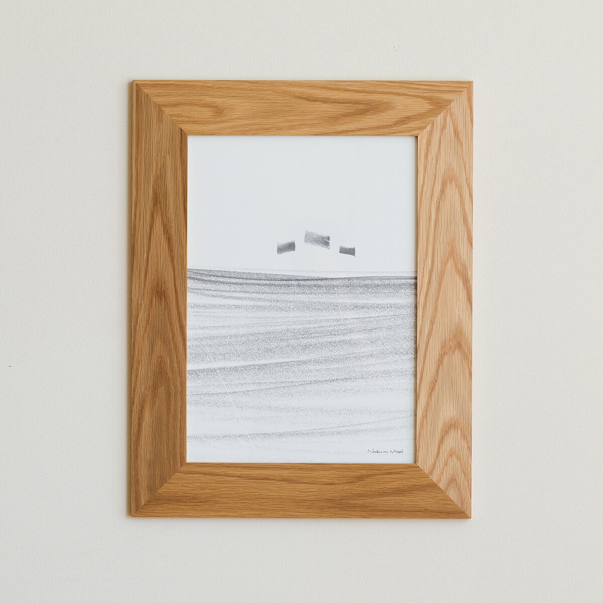 木目の面積が広いため、部屋に優しい表情を演出することができます。比較的小さなサイズの作品を飾るのにおすすめです。