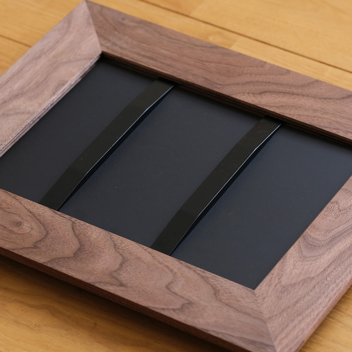 すっきりとした印象で作品により視線が向かう効果があり、ポスター、写真、子どもの作品などマルチに活躍します。シャープな仕上がりの家具との相性は抜群です。