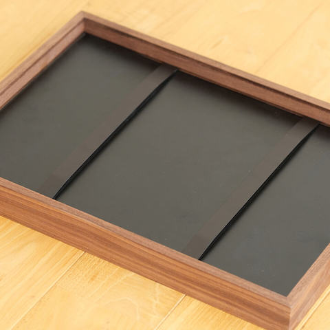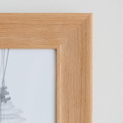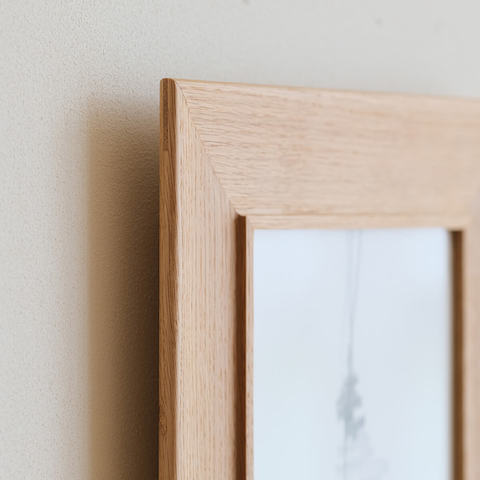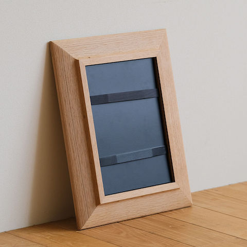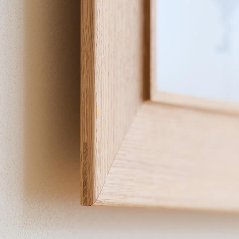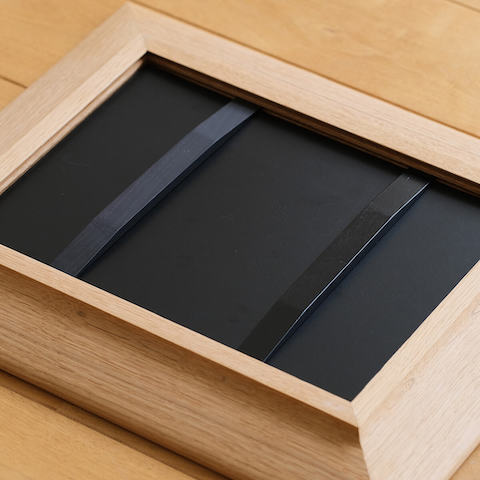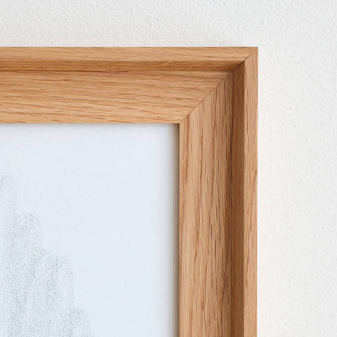 サイズは縦横1mm単位でオーダーしていただけます。木材は3種類から、デザインは5種類からそれぞれ選んで、作品やお部屋にあったフレームを制作いたします。