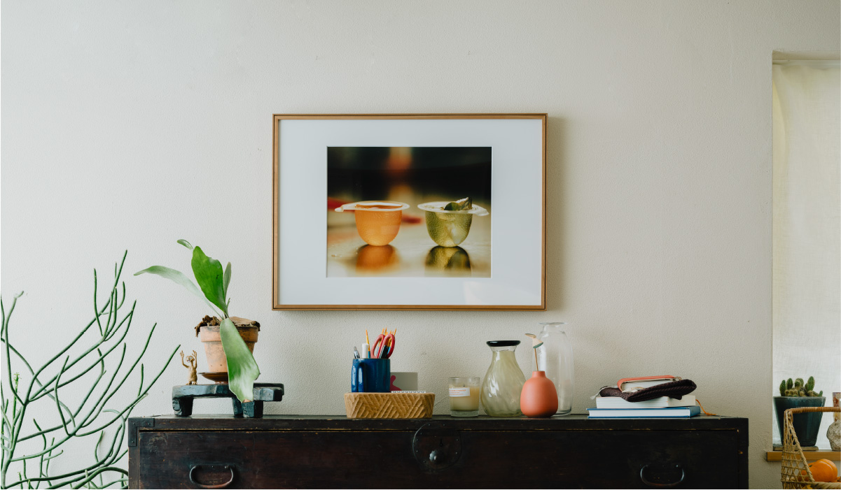 フレームは窓の様に景色を切り取る風景だと思っています。写真を飾る事で何か想像したりリラックス出来る生活の一部になってくれたらと思っています。