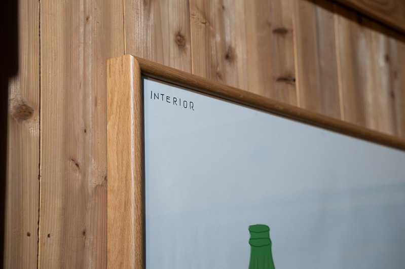 石蔵を改装したカフェに飾っているB1サイズのイラスト。店内の壁面は杉材ですが、TIPOのデザインは立体的な存在感があり、とても映えます。フレーム自体は質感を感じさせる重みがありますが、取り付け金具でしっかりと固定でき安心です。なかなかサイズの合うものや満足いく質感のフレームに出会えなかったのですが、DENTOのフレームは身の詰まった高品質な木材がとても気に入っており、他のサイズも増やしていきたいなと思っています。